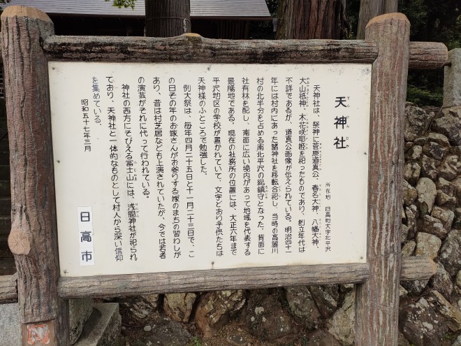 平沢天神社は、埼玉県日高市の神社です。御祭神は、菅原道真、春名大神等です。